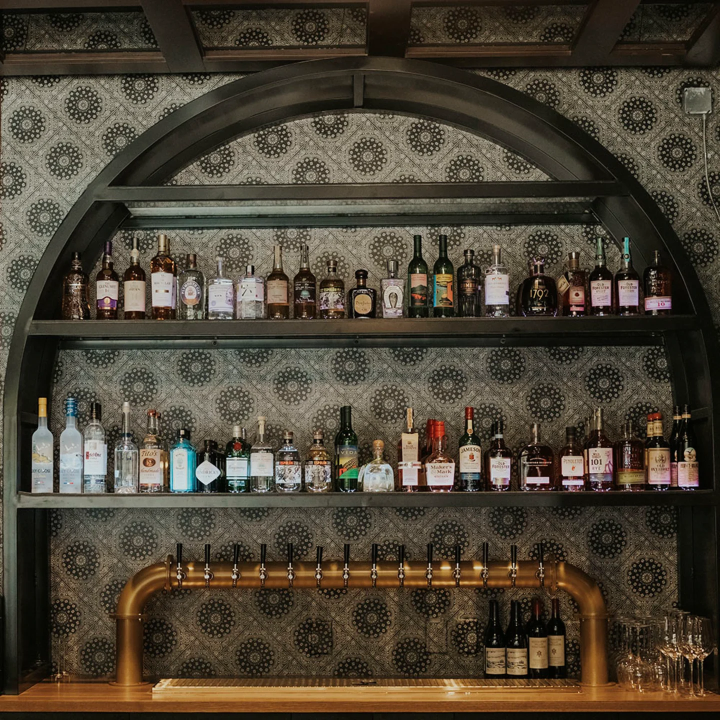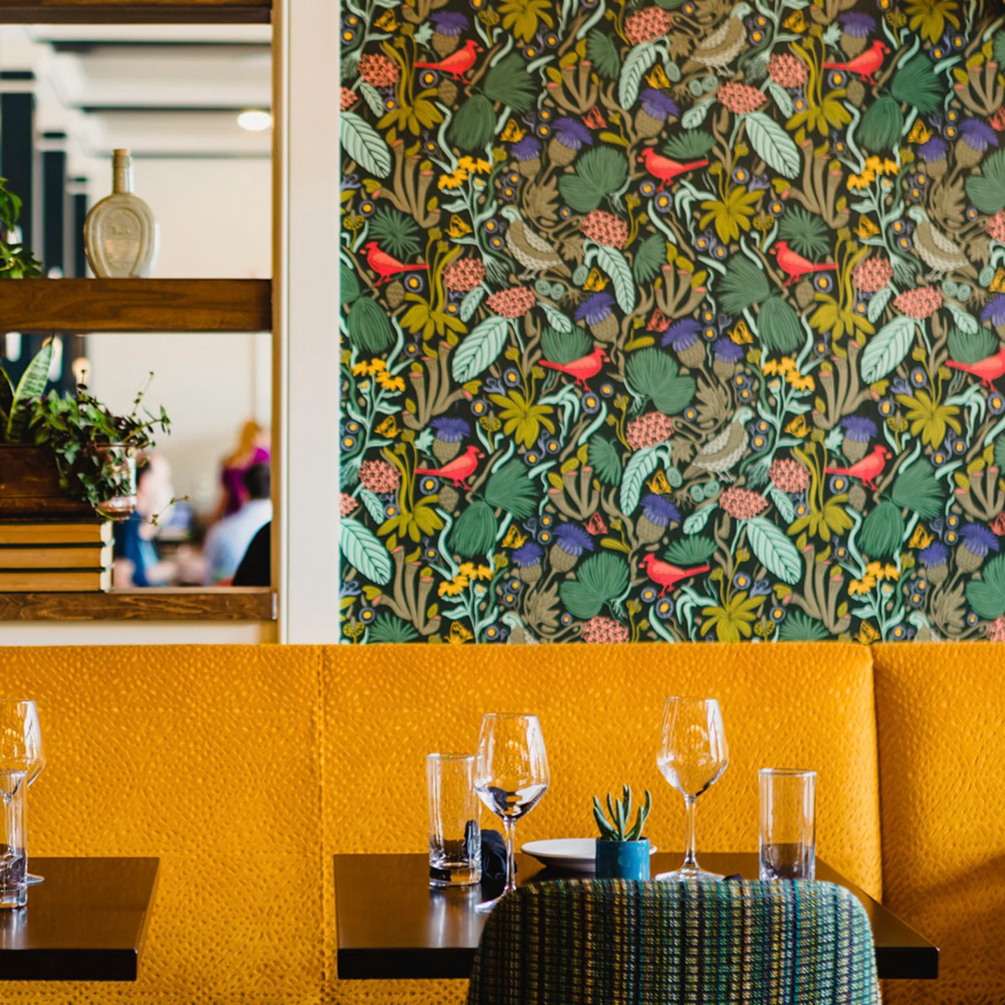 Abstract geometric wallpaper in a restaurant